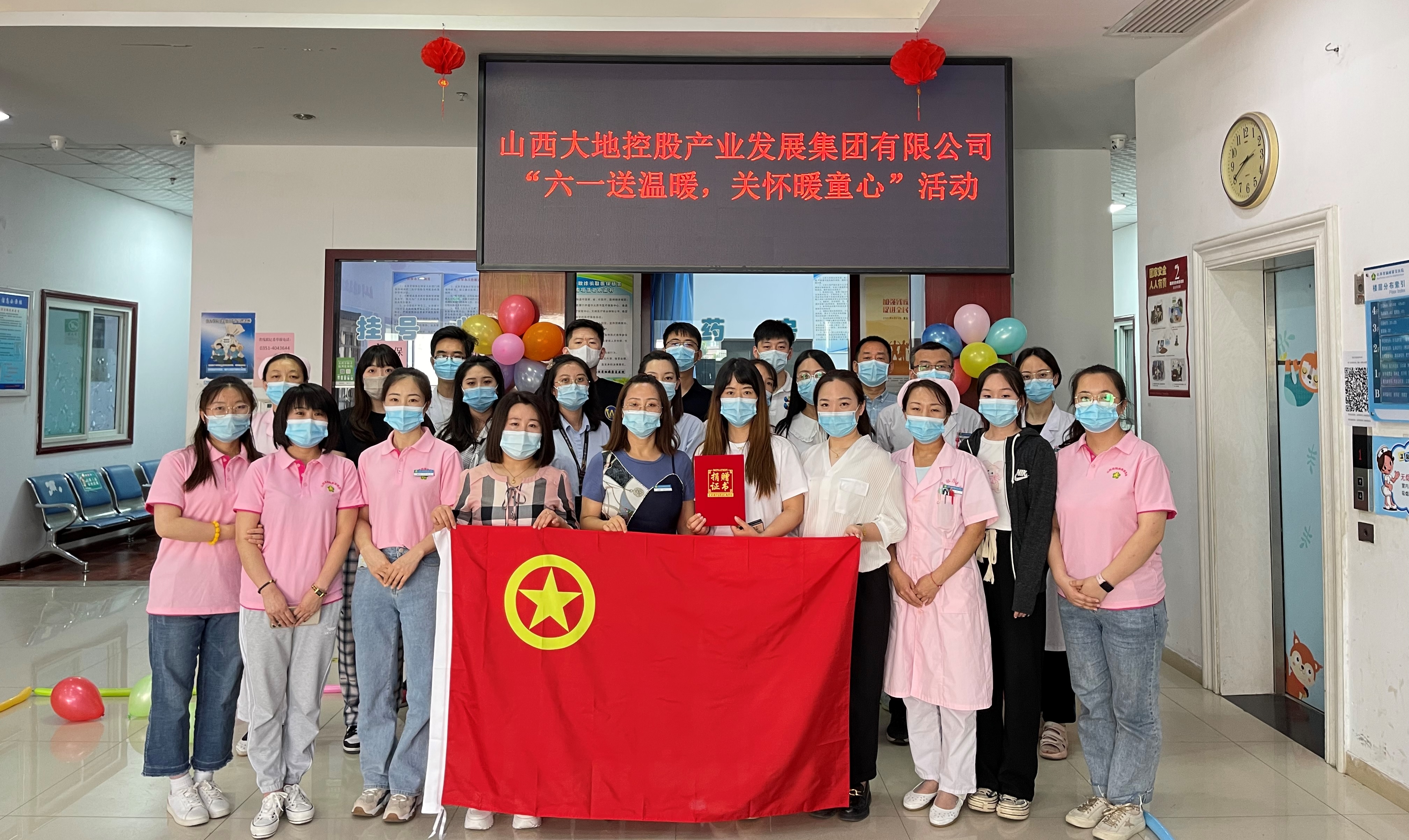 六一儿童节到来之际,5月27日下午,山西大地控股产业发展集团有限公司党支部、团支部的志愿者走进省脑瘫康复医院开展“六一送温暖,关怀暖童心”慰问活动,为在医院接受治疗的残疾儿童送来了60盒面包、饼干等食品和120盒蜡笔等价值2000余元的物品,并为医院医务人员送上鲜花。